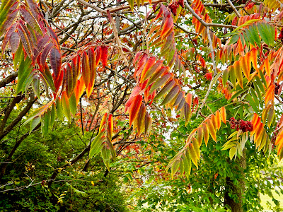 Sumacs are usually the first, and by now most would usually have dropped their leaves and be left with only the red clumps of seeds.
